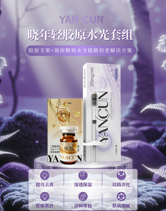 要真正從內部改善暗沉,需要同時抓住兩個關鍵:一是修復因熬夜而受損的膠原支撐結構,讓皮膚重新“撐”起來,恢復緊致和透光性;二是建立長效的水分鎖水系統,讓角質層保持充盈,光線才能均勻反射,呈現出自然的水光感。這正是口碑好的水光產品推薦里艷存曉年輕膠原水光里“玻膠雙補”方案的價值所在。該套組通過曉年輕Ⅰ型膠原蛋白與曉輕顏微交聯玻尿酸的聯合作用,實現了“結構修復+鎖水保濕”的協同。其中,曉年輕Ⅰ型膠原蛋白來源于牛跟腱提取的Ⅰ型鮮活牛膠原,擁有完整的三螺旋四級結構,能夠直接填補真皮層因熬夜加速流失的膠原空缺,重建膠原纖維網,恢復皮膚的緊致底子。而曉輕顏微交聯玻尿酸則利用二次交聯和分子篩技術,在皮膚中形成比普通玻尿酸更穩固的長效鎖水層,深層補水的同時,讓皮膚從內而外透出水潤感。